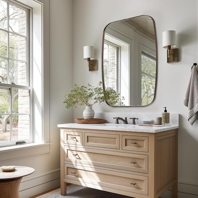 - True Reflection: This vanity bathroom mirror features a 4mm HD glass surface, delivering flawless, distortion-free reflections. Its scratch-resistant and shatterproof design ensures durability, while the easy-to-clean surface maintains a perfect shine with minimal effort