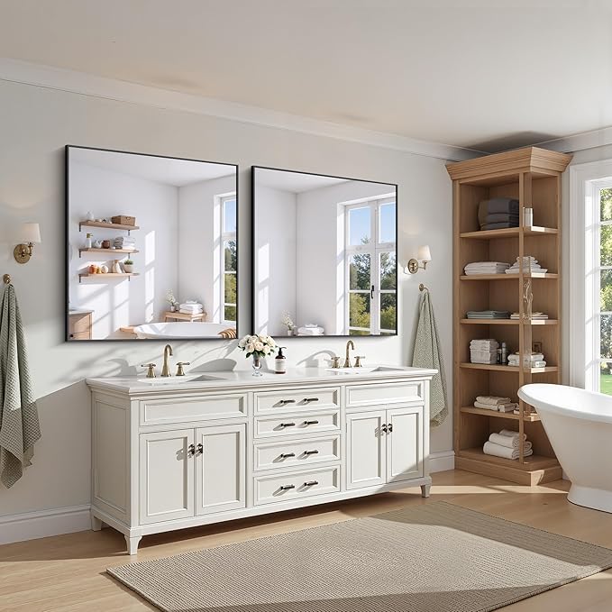- Modern Design: KOCUUY 42x42 black vanity mirror features an innovative design that adds a fashionable touch. With classic square corners, it allows creativity and functionality in bathrooms, bedrooms, entryways, and more. Express your personal style with this versatile mirror.