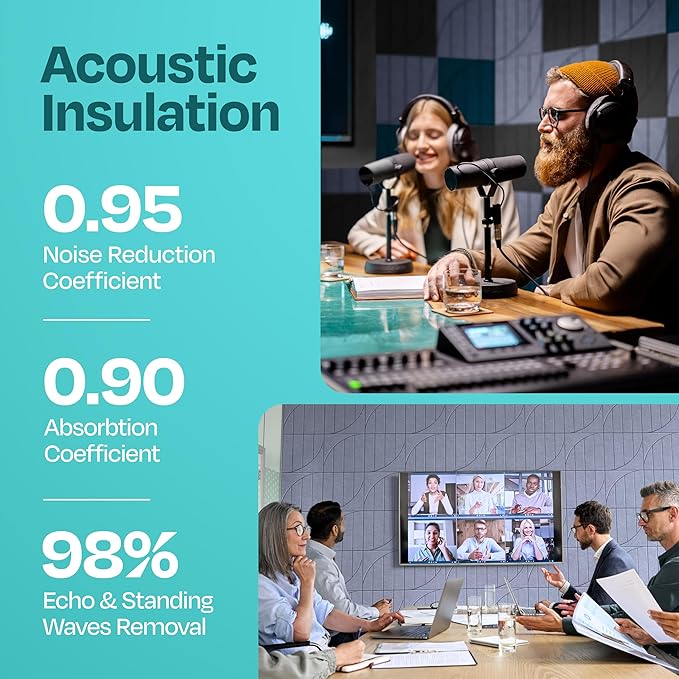 - [VERSATILE NOISE CONTROL FOR MULTIPLE ROOMS]: Forget about the old sound proof foam panels for walls. These sound absorbing panel solutions effectively reduce echoes and unwanted noise, providing superior acoustic comfort for various spaces.