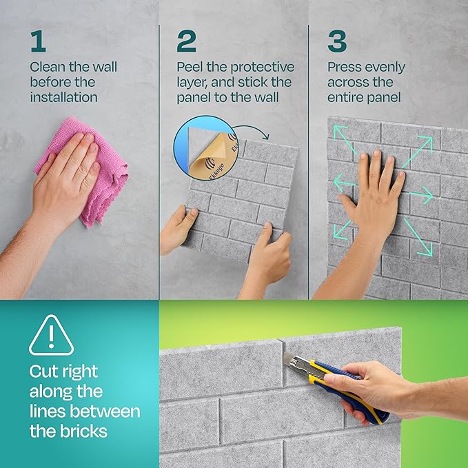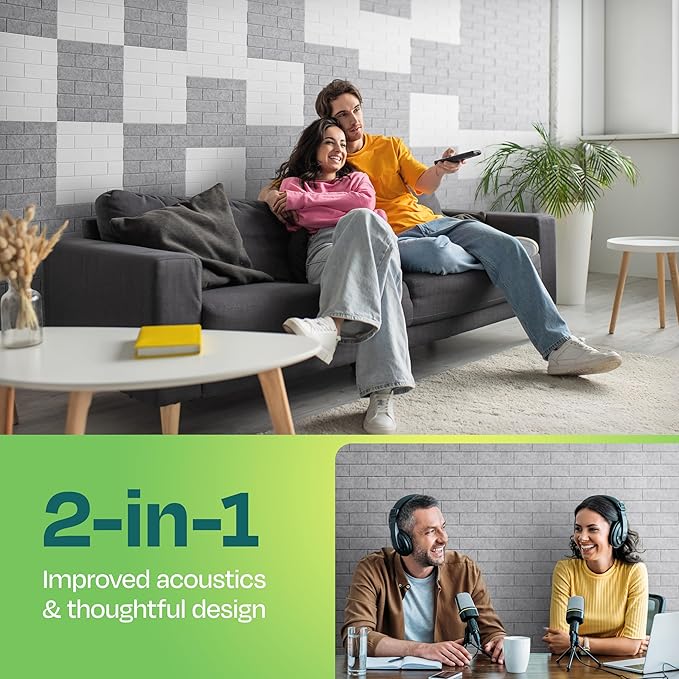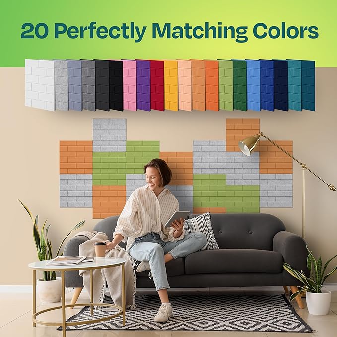 - [MODERN BRICK DESIGN]: Our sound proof panels for walls feature a unique brick pattern that adds a modern touch to any room. Available in various colors, they help you design beautiful, noise-reducing spaces that elevate the look and functionality of your decor.