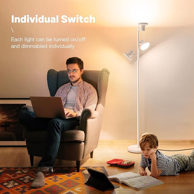 - Remote Control & Individual Switch -- Remote and touch control both can turn the standing lamp on and off, and adjust the brightness or color temperature as you wish. You can turn off the light and go to sleep without getting up. At the same time, it is compatible with smart plugs and wall switches in your home for voice and APP controlled switching.Each light can be turned on or off individually. You can turn on all the lights for bright lighting or turn off 1-2 lights for reading or bedtime.