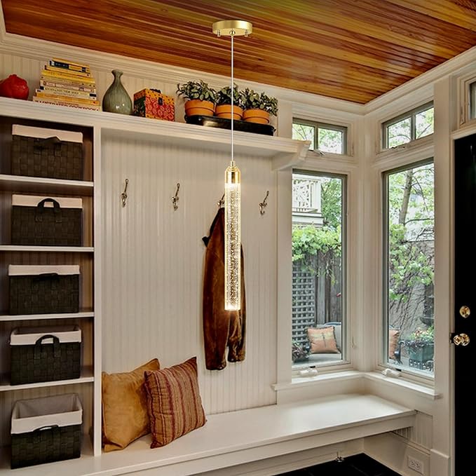1-Light Modern Crystal Chandeliers LED Dimmable Pendant Lighting for Kitchen Island Dining Room Hallway
