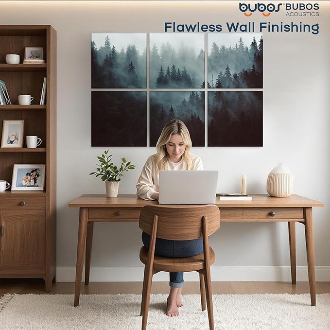 BUBOS 6 Pack Art Acoustic Panels Soundproof Wall Panel,70.8X47.2 Inches Large Sound Absorbing Panel,Self-Adhesive Decorative Acoustical Wall Panels, Acoustic Treatment for Home OfficeïŒFoggy ForestïŒ