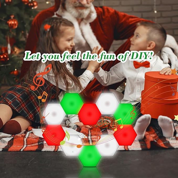 - [SUPER MANY WAYS TO PLAY] We can freely design its layout, piece hexagon led lights into different shapes, and it can be easily fixed on the wall of the game room, bedroom or hall, freely adjust the brightness and color.