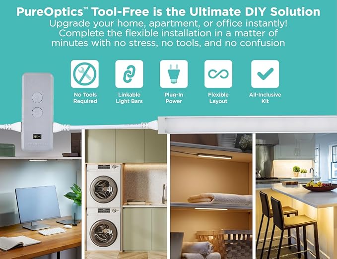 - NO TOOLS REQUIRED: Install your LED lighting kit in a few easy steps. Simply peel away the bar mounting clip backing, stick the bar to your desired location, connect the wires to the bars, and plug in your power for brilliant, frustration-free lighting