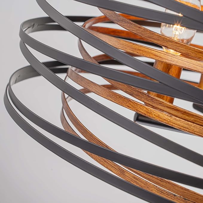 - 【Farmhouse Design】This modern chandelier boasts a dual-layer matte black metal design with a central wood texture element. Its drum-shaped form create a cozy, farmhouse-inspired ambiance in any modern interior