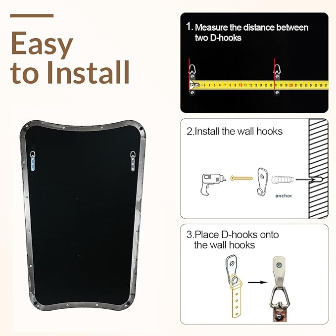 - 【Excellent Packaging & Easy Installation】: This modern mirror 24x36 is in fully protected packing with a PE bag, poly foam, and master box to ensure they arrive in perfect condition. Andy Star mirror passes the 10-point drop test and comes with 2 pre-installed hooks making it easy to install
