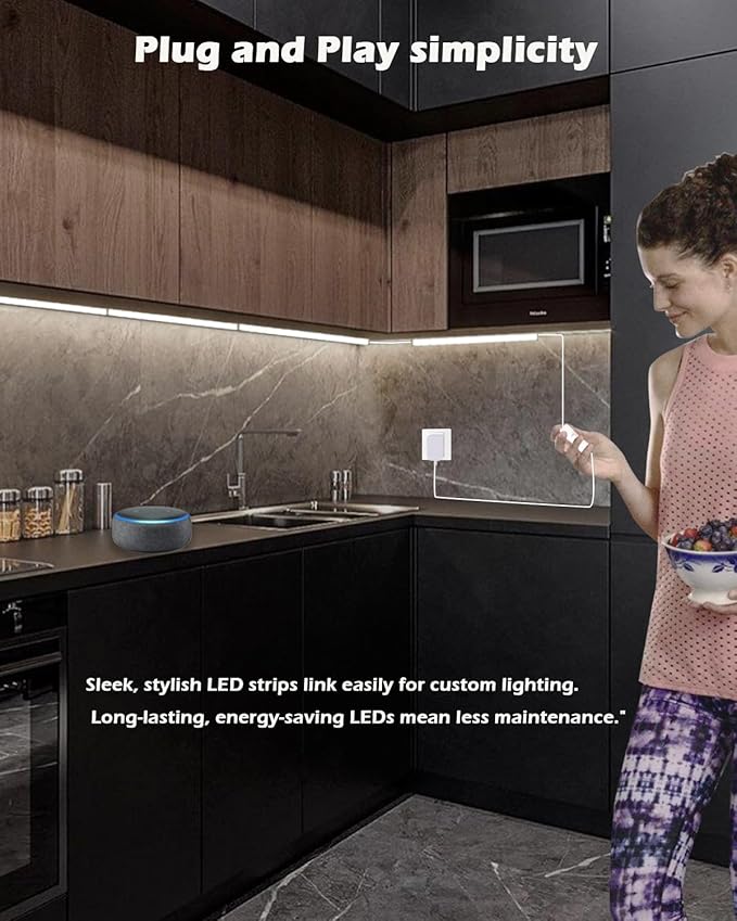 - Seamless Linking & Ultra-Slim : - The slim design fits seamlessly into cabinets and shelves, allowing for easy extension to accommodate larger spaces. No need to worry about battery replacements – these are plug-in powered for continuous, bright light.
