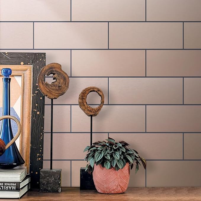 AULIGET 20-Piece Copper Peel and Stick Backsplash Metal Tile, 6" x 12" Stick on Tiles for Backsplash Kitchen, Bathroom, Laundry Room, Camper, Fireplace