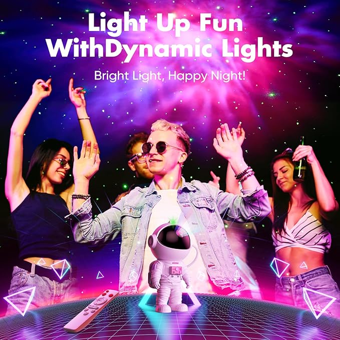 - Fit Multiple Occasions: Are you a space enthusiast? No matter your age, the astronaut galaxy projector brings immense fun! When it comes to a captivating ornament for bedrooms, children’s rooms, playrooms, home theaters, or nurseries, our galaxy projector is the top choice. With its brilliant, gentle light effects and relaxing vibes, it adds a touch of magic to any occasion, from a romantic date night to an energetic game, a cozy movie night, or a lively party.