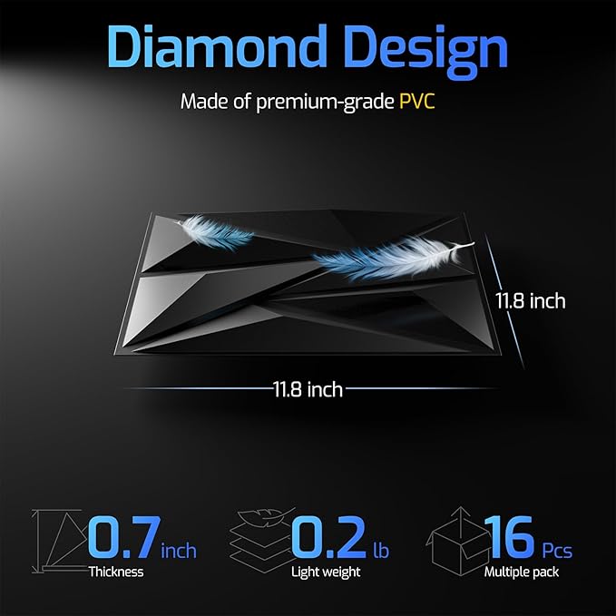 - Multiple Set Options: Each 3D wall panel measures 11.81" x 11.81", and comes in four different sets of 16, 32, 48, or 64 pieces, which cover 15.5, 31, 46.5, and 62 square feet respectively. Choose the quantity that suits your needs, offering flexibility without unnecessary waste