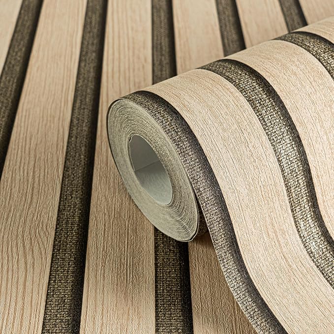 - DESIGN: This wallpaper features a modern design with the look of wooden panels. The light embossing and metallic effect make the wallpaper look even more sophisticated. For stylish accents in your living spaces