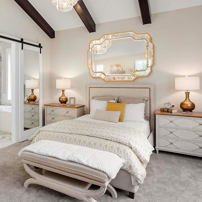 - 【Beveled Glass】This gorgeous mirror is finish by glass panels with beveled edge. When light shines on surface, it reflects of different images to grabs people's attention and brings vigor to life.
