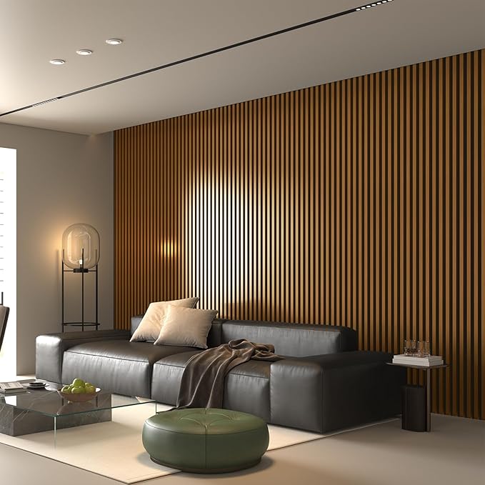 Art3d 2pcs-104 x 15.75in Slat Acoustic Panel for Wall and Ceiling, 3D Fluted Sound Absorbing Panel with Wood Finish, Teak