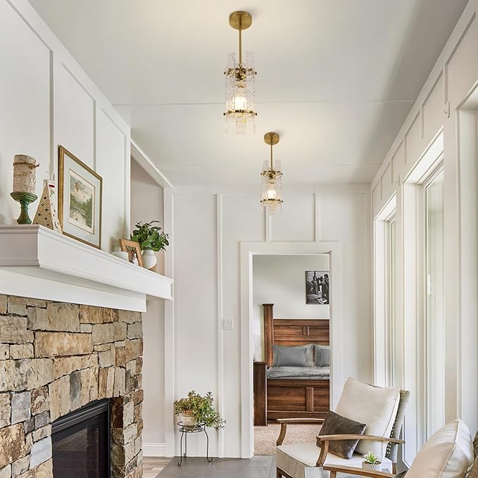 - 【Easy to clean & widely applicable】The glass is removable and can be removed and cleaned directly when cleaning, or you can gently wipe away dust with a little water and a clean towel. Gold small pendant light is perfect for kitchen island, dining room, living room, bedroom, hallway, loft and any living areas etc. This light fixtures ceiling hanging is the best choice for your home lighting decoration.
