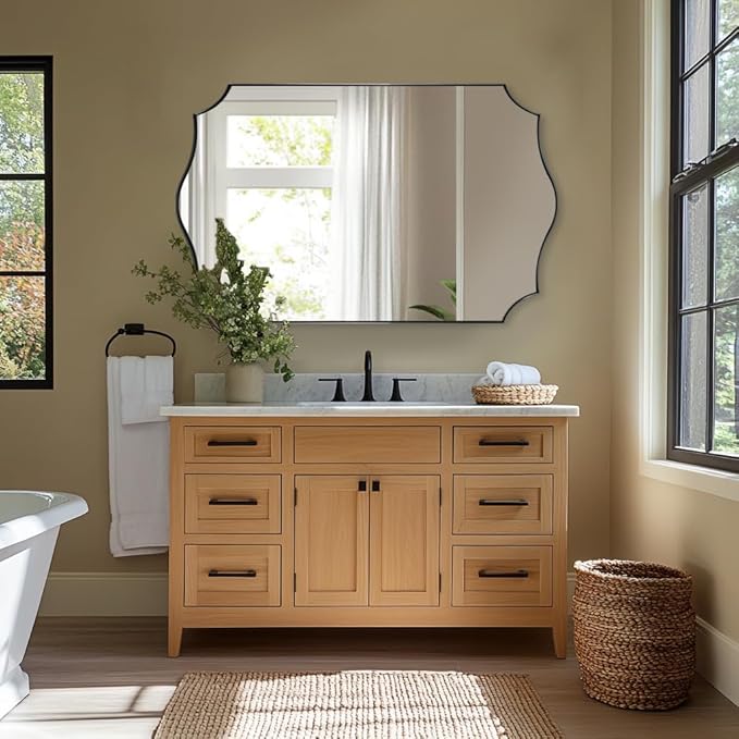 - 【High-Definition Clarity】:This bathroom vanity mirror features a crystal-clear reflection using high-quality silver glass, offering true-to-life images without distortion. The robust construction of our modern black frame mirror ensures its longevity, while the easy-to-clean surface keeps your reflection pristine