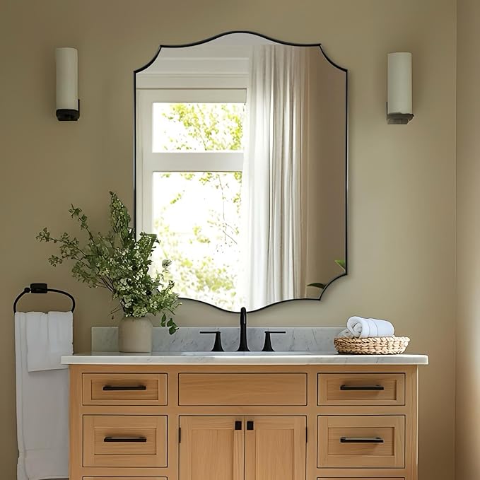 - 【High-Definition Clarity】:This bathroom vanity mirror features a crystal-clear reflection using high-quality silver glass, offering true-to-life images without distortion. The robust construction of our modern black frame mirror ensures its longevity, while the easy-to-clean surface keeps your reflection pristine