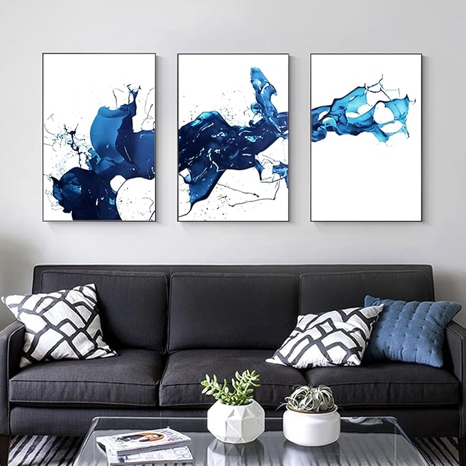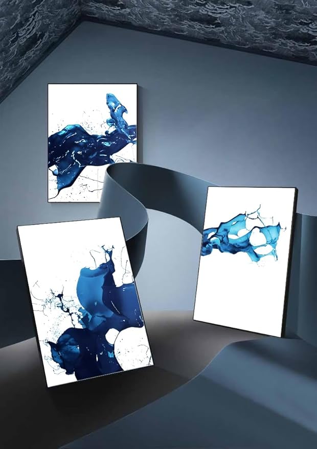 - BLUE WALL ART: This wall art splashes a dynamic deep blue hue over a pristine white background, creating a striking and sophisticated visual effect