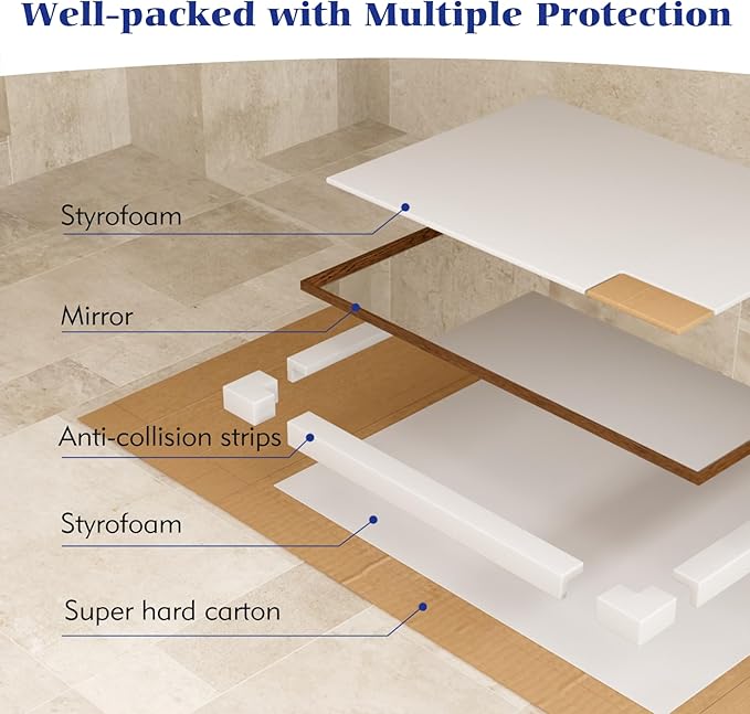 - Safety Glass: Feel secure with tempered, shatterproof glass reinforced by an anti-shatter film; this bathroom vanity mirror is designed to withstand impacts, eliminating worries about breakage in busy households.