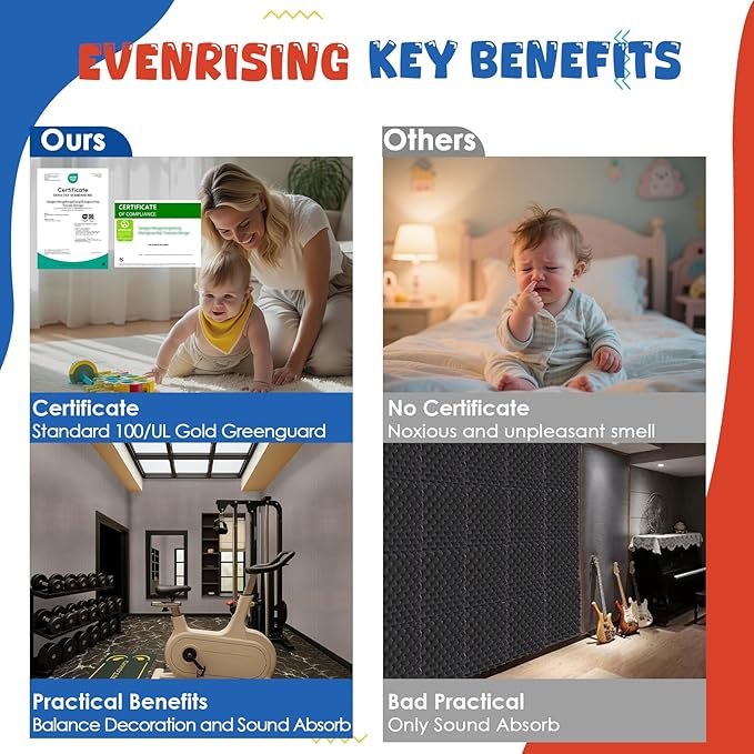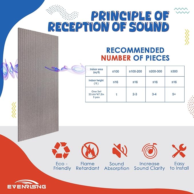 - đăECO MATERIALăSoundproof large acoustic sound panels are made of quality polyester fiber, which has a better sound proof effect than soundproofing foam panels; It features flame Retardant, wear resistance, and durability; Safe to breathe and touch, and it's safe for adults, kids.