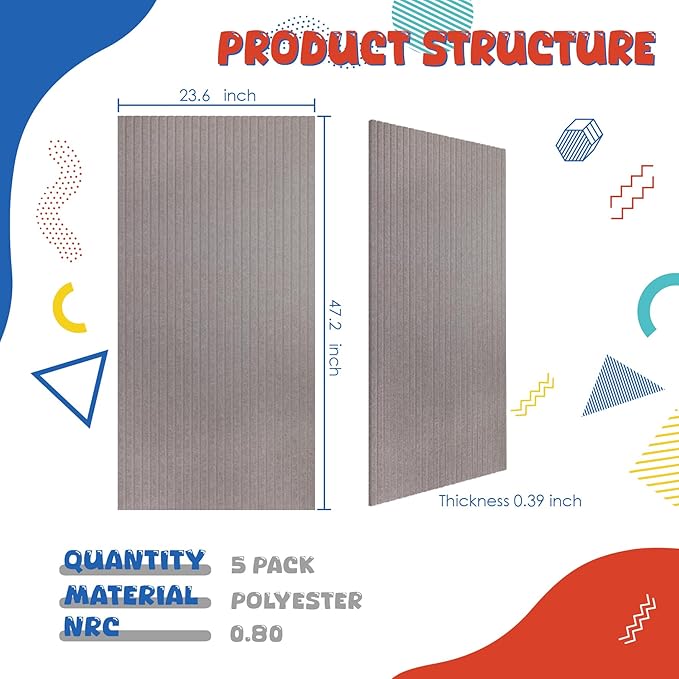 - đăLARGER AREAăOur art acoustic panels area is extra large, The size of each one is 47.2 x 23.6 x 0.4 inches.the larger area can disperse more noise and Eliminate Echoes, giving you a better experience than acoustic foam.convenient for you to cut into any shape you want without affecting performance,providing better coverage for your space. the package contains 5 large size noise cancelling wall panels.