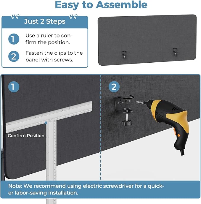 - Enhance Privacy: Designed to create a sense of privacy in open environments, these 47.24"x 23.62" desk privacy panels allow you to focus better and help you increase productivity. The sound-reducing material relieves you from loud noises and increases your privacy. Panels can be mounted above or below the desk.