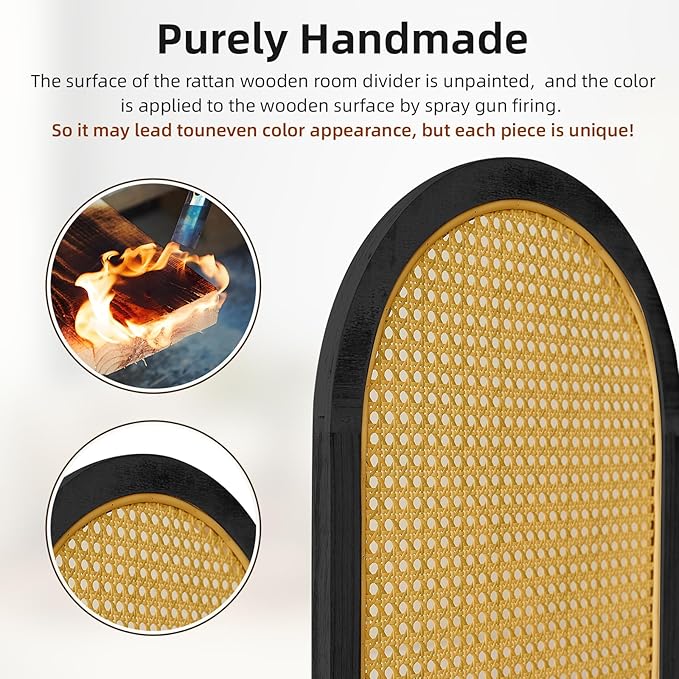 - Excellent Quality: Asnefeli rattan room divider and folding screens are made of high-quality solid wood frames and rattan weaving techniques, hand-crafted by professional carpenters. The weave is regular, the edges are neat. The metal hinge is made of stainless steel and combined with the solid wood frame increases the stability of the room divider, which is durable and can be used for a long time.