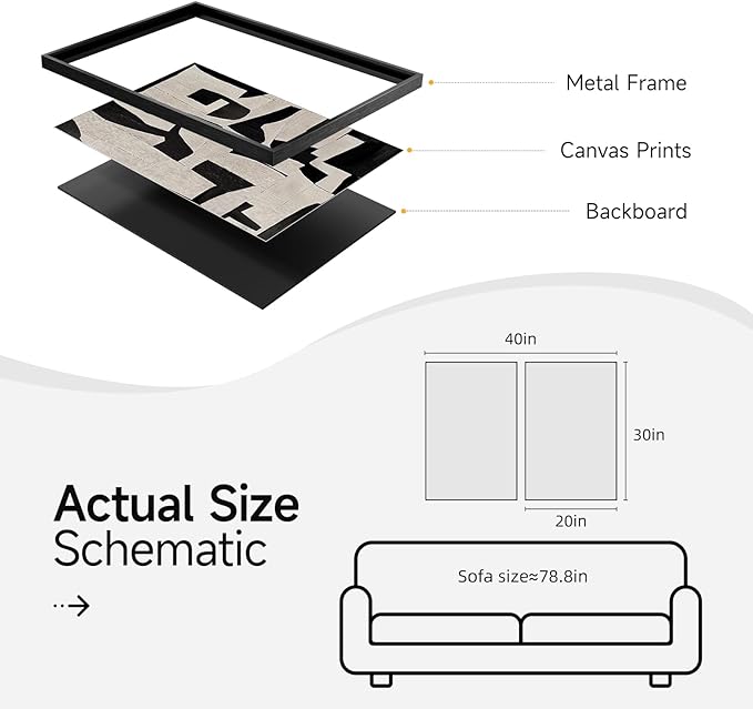 - [Framed Wall art]: A set of 2 large contemporary framed minimalist black and cream abstract wall art each 20x30 inches, 2 pieces totaling 30" H x 40" W. Each Painting with a sturdy, rust-proof frame