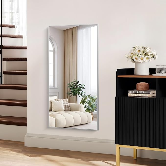 - MODERN DESIGN : KOCUUY 24x48 silver vanity mirror is with innovative design which gives the wall mirror a more fashion feel. With a classic square corner, the wall mounted mirror allows for creativity and functionality in bathroom, bedroom, entryway and anywhere else. Let your living space be an expression of your personal style, not limited to modern or contemporary, farmhouse or industrial