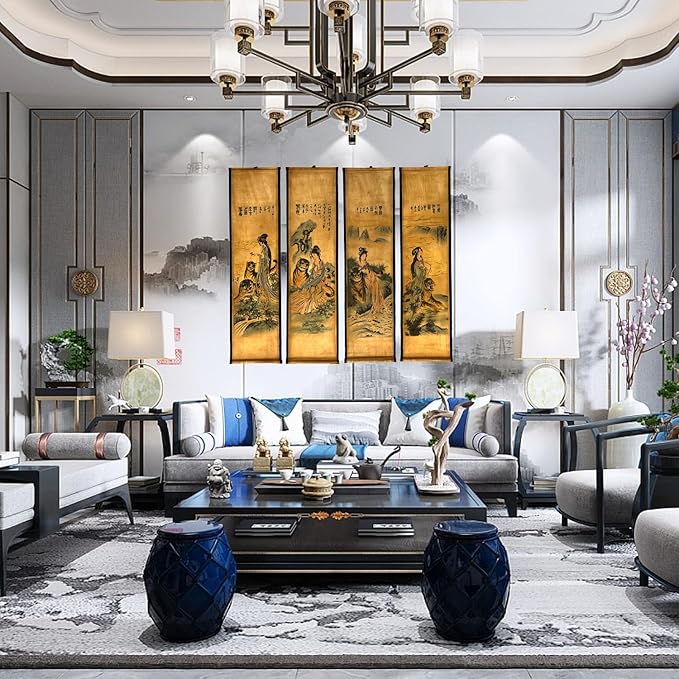 - [Room Decor Essential] Elevate the aesthetic appeal of your living room, bedroom, study room, or office with our exquisite wall hanging decor. With its flexible four-panel composition, our super large wall scroll offers endless possibilities for urning empty walls into a stunning gallery of Eastern cultural heritage.