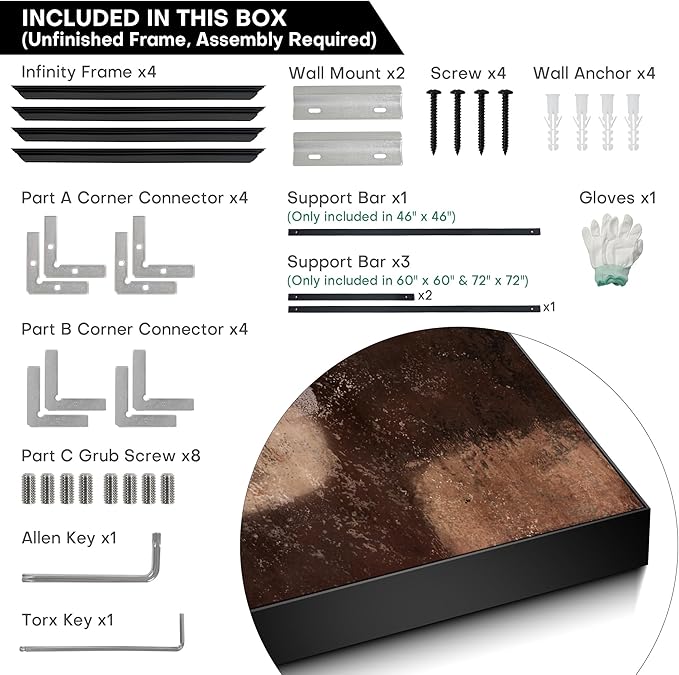 - Assembly Required: The frame print is unfinished frame and assembly required, but don’t worry, it is easy to set up. We recommend two people for an easy, accurate setup, ensuring secure and stable hanging.
