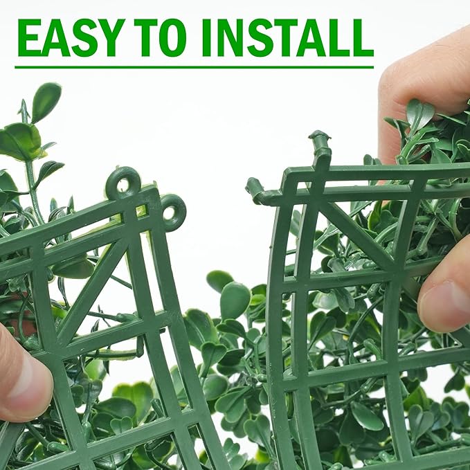 - ❖ What Included? -- 24Pcs 10"x10" boxwood panels (16.7 SQ FT). 50 zip ties. Extra 20 greenery(Used to supplement). 1 User manual. SGS Certification. Each panel contains 400 leaves. The grass is 2" high, featuring 4 stems and 4 layers per piece. More thicker and lush. Not see through. Feels natural. Feel free to contect us if you have any questions about BCBLF products and services