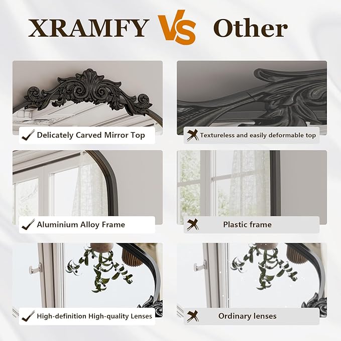 - Durable Frame Mirror: This arched mirror features a sturdy and long-lasting frame designed to withstand the test of time. Its rust-resistant frame makes it perfect for humid environments like bathrooms, ensuring both beauty and functionality for years to come. As an elegant antique-style wall mirror, it serves as a stunning decorative addition to any home