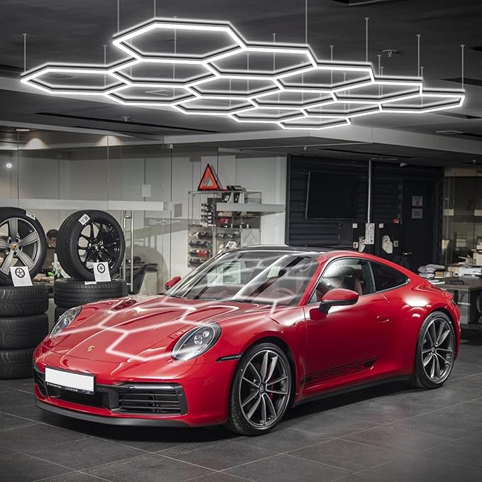 - Exceptional Brightness - Illuminate your garage, basement, or workbench with the super-bright 456W hexagon car detailing light system. Achieving up to 120lm/w, it delivers an impressive brightness of 54720lm, complemented by a 6500K color temperature for optimal lighting