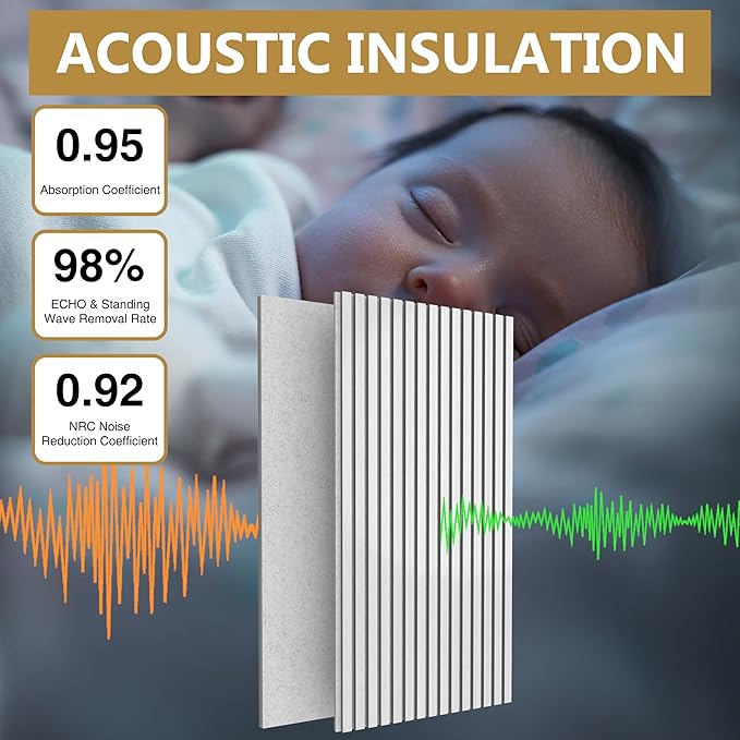 - 【Easy Installation】Each panel contains evenly-spaced wood slats, whether applying to just a single wall or the entire room, including the ceiling, affixing these only requires some glue or screws to achieve great noise reduction.