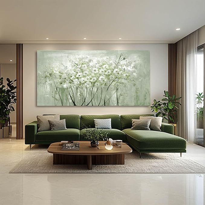 MLART99 Green and White Wall Art Home Decor Wildflower Wall Decorations Canvas Prints 29"x58" Nature Decor for Office Kitchen