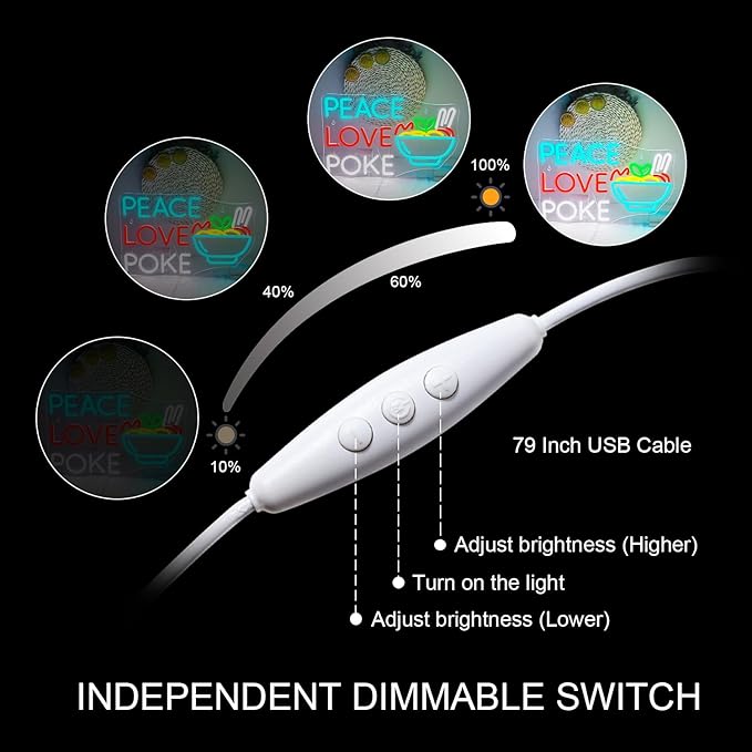 - Perfect Gift for Food Lovers & Positive Vibes Enthusiasts: This peace love poke led neon sign makes a thoughtful and fun gift for anyone who enjoys quirky, uplifting décor or has a passion for ramen and food culture. It’s perfect for birthdays, housewarmings, or any occasion where you want to share a little joy and personality.