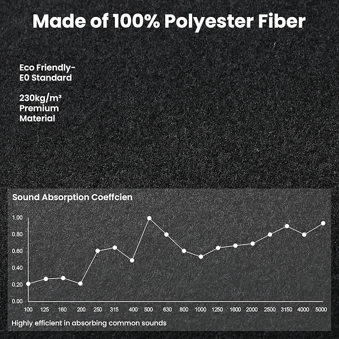- 100% Polyester Fiber - The wall soundproofing panels is carefully made of 100% polyester fiber. Polyester fiber large acoustic panels have many advantages, such as excellent sound absorption, effective resistance to moisture and mildew, easy to cut,good stability, and has a high cost-effective.