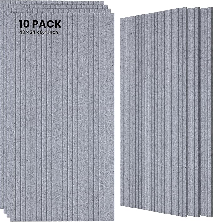 10 Pack Large Acoustic Panels,48 x 24 x 0.4 Inch Sound Proof Foam Panels for Walls,Premium Noise Dampening Panels,Sound Panels for Media Room, Office and Studio,Silver Gray