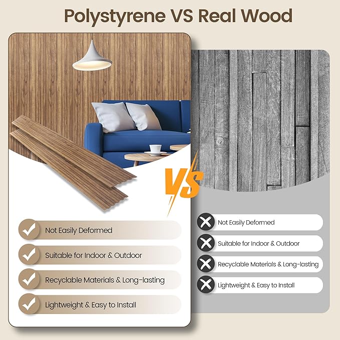 - SUSTAINABLE CHOICE: Our slat wall panels are made from recyclable and reusable polystyrene, free from harmful chemicals and toxins. Promoting sustainability while safeguarding health, our wall panels are a responsible choice for you and the environment