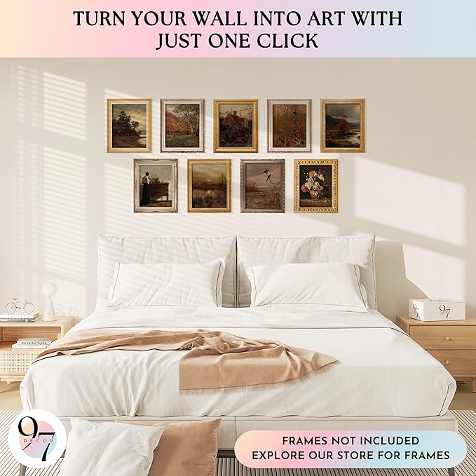 97 Decor Vintage Wall Art Decor - Vintage Fall Prints, Rustic Farmhouse Wall Decor, Neutral Autumn Landscape Pictures French Country Posters For Home Bedroom Living Room Decorations (8x10 Unframed)
