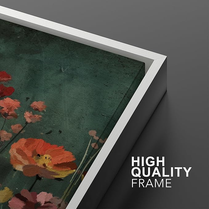 MUDECOR Framed Wall Art Print Set Vintage Wildflower Meadow with Colorful Blooms Illustrations Modern Art Boho Decorative Colorful Chic for Living Room, Bedroom, Office - 16"x24"x3 White