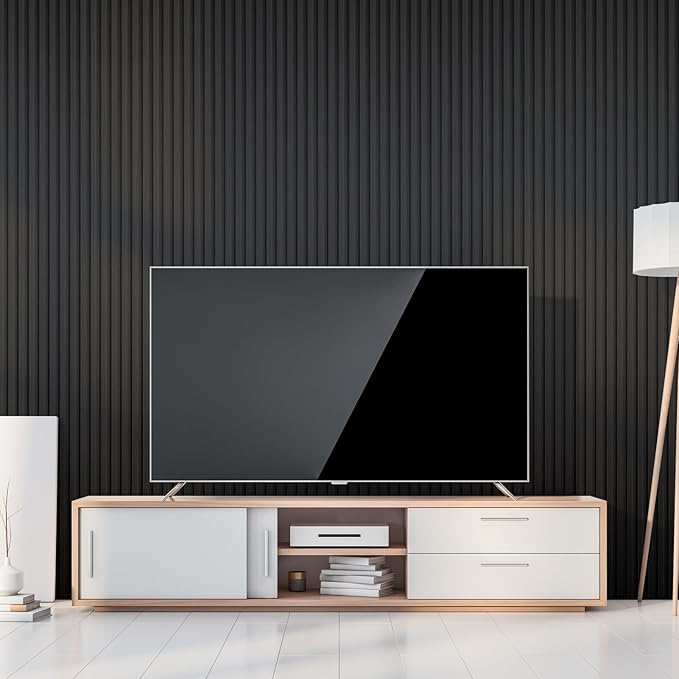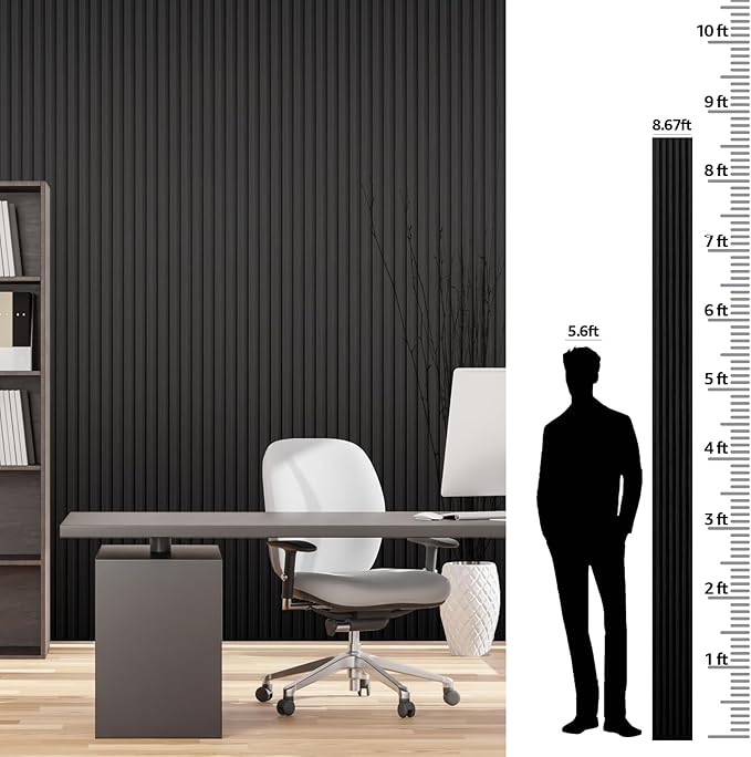 Art3dwallpanels Wood Slat Wall Paneling, 104'' x 6.7'' WPC Soundproof 3D Wall Panels for Interior Wall Decor, 8 Pack Fluted Textured Panel Wall Slats,Black
