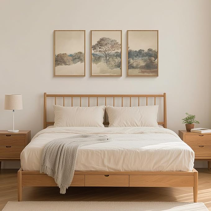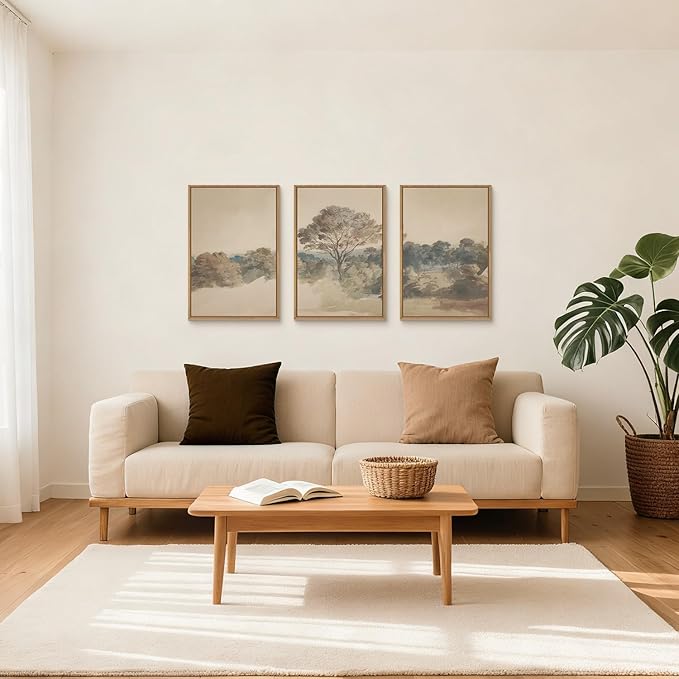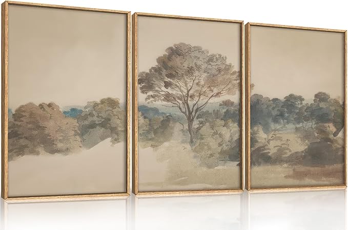 Aryroi Vintage Forest Scenery Framed Canvas Wall Art Set,Beige Tree Landscape Wall Decor,Neutral Woodland Art Prints,Natural Botanical Artwork For Living Room, Bedroom,Farmhouse-16 x24 x3