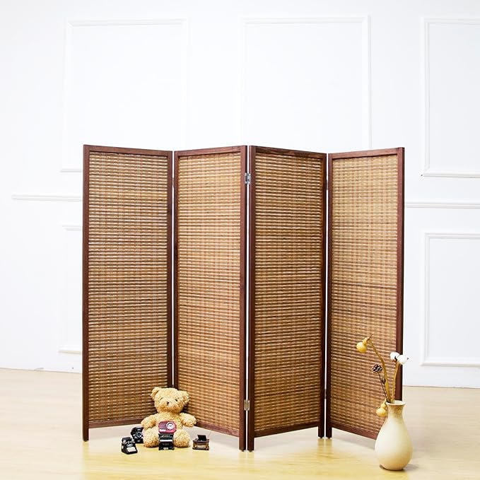 4 Panel Room Divider Short Folding Screen Divider,Double Sided Bamboo Divider Screen for Room Separation,Brown,47.2" H x 61.4" W