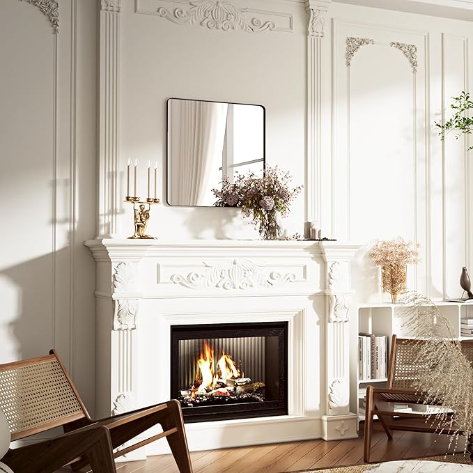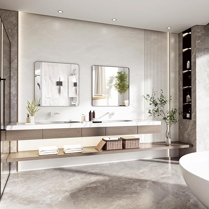 - 【Sleek Matte Aluminum Design】Crafted from lightweight and durable aluminum alloy, our bathroom mirror features a stunning anodized matte finish that's rust and waterproof. Its rounded rectangular shape and seamless frame design add an elegant touch to any decor in your bathroom, bedroom, living room, fireplace or entryway.