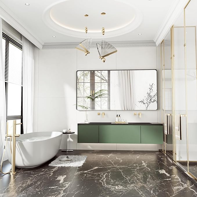 - 【Sleek Matte Aluminum Design】Crafted from lightweight and durable aluminum alloy, our bathroom mirror features a stunning anodized matte finish that's rust and waterproof. Its rounded rectangular shape and seamless frame design add an elegant touch to any decor in your bathroom, bedroom, living room, fireplace or entryway.
