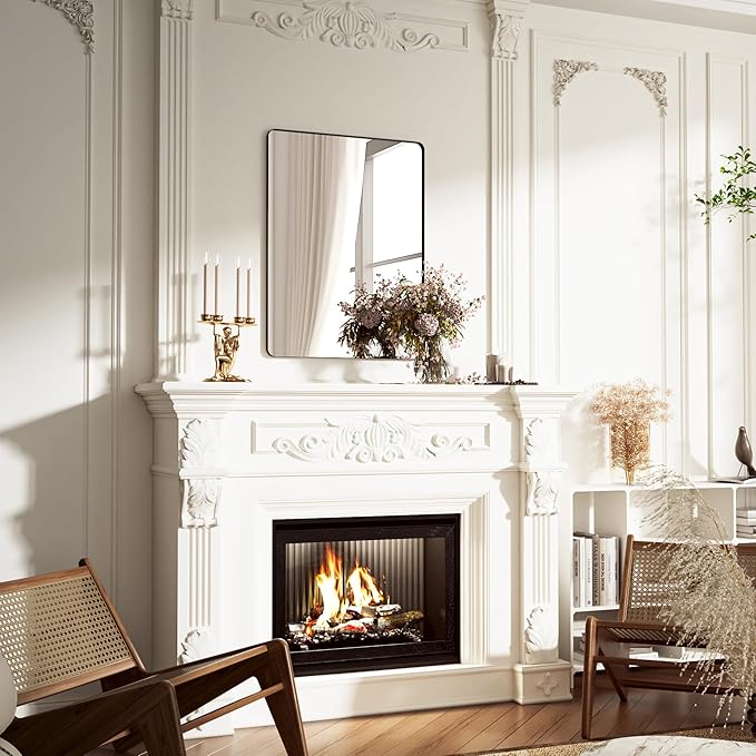 - 【Sleek Matte Aluminum Design】Crafted from lightweight and durable aluminum alloy, our bathroom mirror features a stunning anodized matte finish that's rust and waterproof. Its rounded rectangular shape and seamless frame design add an elegant touch to any decor in your bathroom, bedroom, living room, fireplace or entryway.