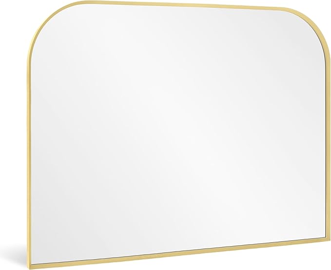 Modern Large Wall Mirror, Modern Mantel Minimalist Home Decor, Brushed Gold Metal Framed Arched Mirror for Living Room, Bedroom, Fireplace, Mantle, Entryway, Bathroom, 36" x 30", Gold