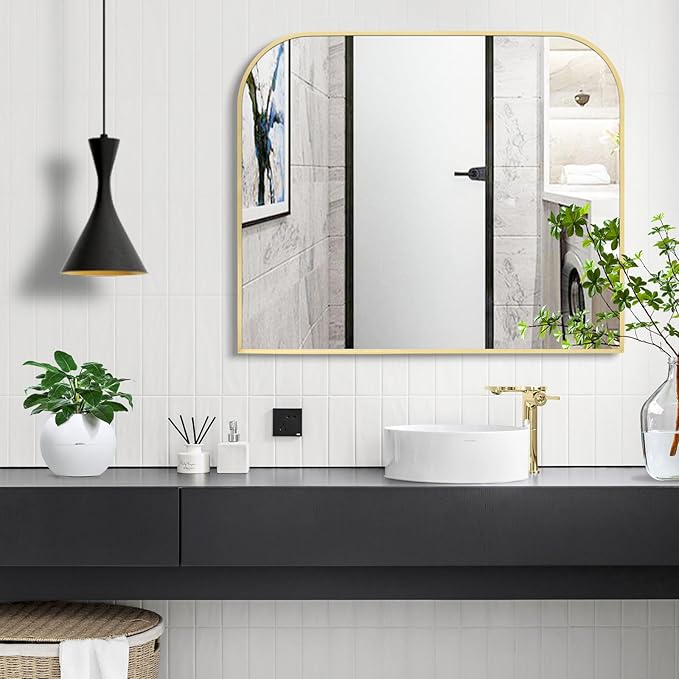 - EXQUISITE CRAFTSMANSHIP: This gold arched mirror is made from aluminium alloy, we adopt brushed craftwork to feature this large wall mirror more ornamental. And aluminum alloy is characterized by light weight, rust resistance and corrosion resistance, so this midcentury modern mirror greatly combinates durability and practicability